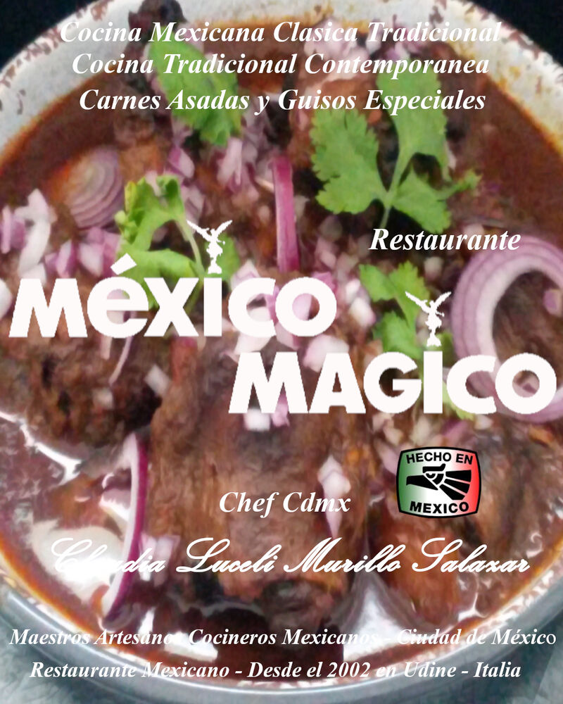 Siamo un piccolo ristorante a gestione familiare aperto nel 2002, il primo e ancora oggi l’unico “restaurante mexicano” in questa parte d’Italia di proprietà e gestito direttamente da una Chef mexicana la Sig.ra Claudia Luceli Murillo Salazar nata e cresciuta nella capitale "Ciudad de México" che prepara personalmente tutte le sue specialità di “cocina mexicana” che propone con un progetto di ristorazione molto particolare e "unico nel suo genere" di vera "rappresentanza culturale gastronomica" con il quale presenta in maniera vivace e allegra la ”cucina tradizionale casalinga e popolare” con cui è cresciuta e grazie al quale è molto apprezzata da numerosi clienti estimatori provenienti da Udine e da tutto il Friuli e anche da fuori Regione e da Austria e Slovenia con crescente interesse per il suo lavoro così particolare e “diverso dal solito format commerciale”. La chef Claudia è molto legata alle tradizioni gastronomiche della sua terra e lavora non solo per farle conoscere in maniera più allargata e più approfondita rispetto alla cucina "commerciale", ma anche per preservarle e rinnovarle e attraverso un graduale percorso di aggiornamento della parte estetica dei piatti portarle a essere sempre le "grandi maestre" e le "grandi protagoniste" della sua cucina piena di ricordi di casa e della sua Città, pensata e fatta proprio per fare da ponte di continuità tra passato, presente e futuro, spaziando tra i i grandi classici della "Cocina Tradicional Mexicana" e la "Cocina Mexicana Contemporanea" che tutte insieme sono proprio la cucina con cui è cresciuta e che con il suo ristorante rappresenta.